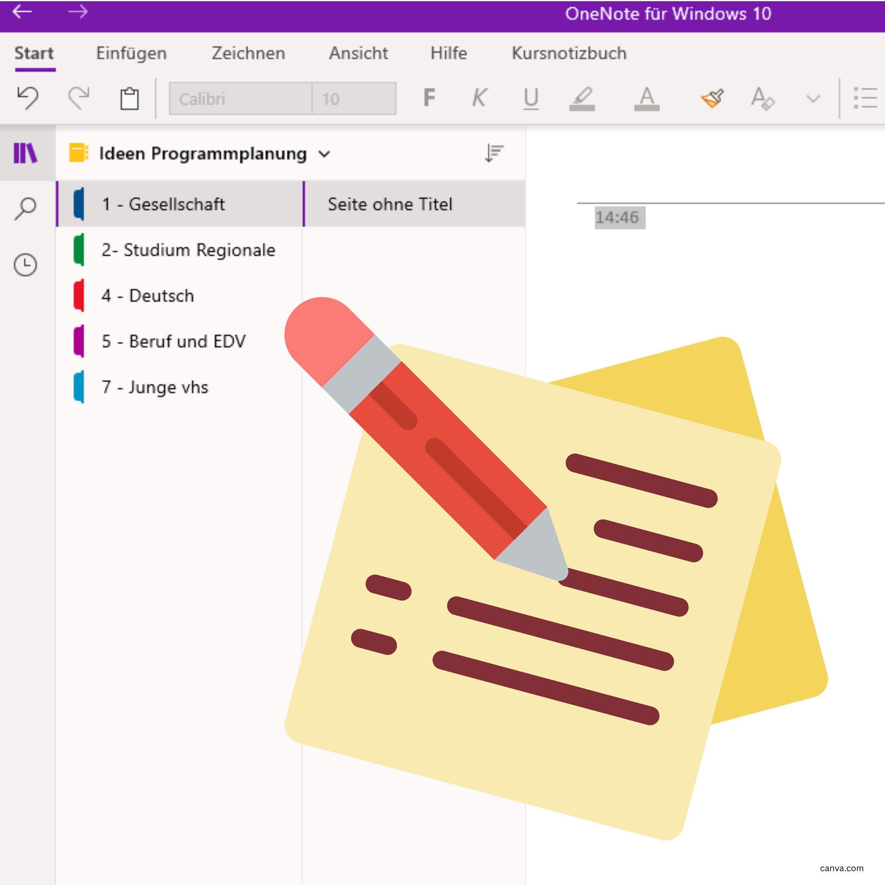 - Aufbau und Struktur von Notizbüchern, Abschnitten und Seiten,